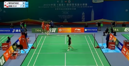2025中國瑞昌羽毛球大師賽 年輕組合李泓毅/鮑驪婧以21-18、21-15淘汰日本隊的渡邊勇大/田口真彩,晉級八強。