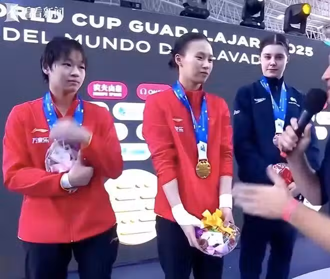 這次墨西哥站陳芋汐少有的排在全紅嬋前面,勇奪兩金。