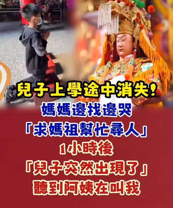兒子上學途中消失,媽媽邊找邊哭求媽祖幫忙尋人, 1小時後兒子突然出現了:聽到阿姨在叫我!