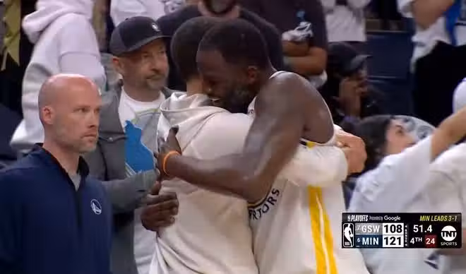 而且雖然都是1:4出局,可是湖人是一輪游,勇士是二輪游。此外,勇士本賽季完成了黑七奇蹟,湖人卻排名第三被吊打,第3一輪游,第7二輪游,勇士並不尷尬。重點是勇士這輪比賽有庫里的時候,勇士隊1:0領先森林狼,沒了庫里的4場全輸了,很難說全陣容的勇士實力不如狼隊。
