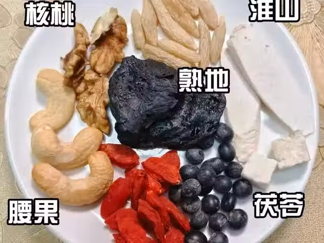 核桃,腰果,麥冬,枸杞,淮山,熟地,黑豆