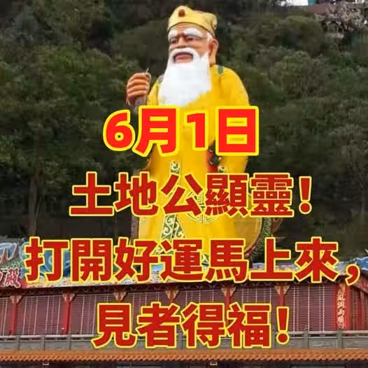 6月第一天,土地公顯靈!打開好運馬上來,見者得福!6月身體安康發大財!真的靈