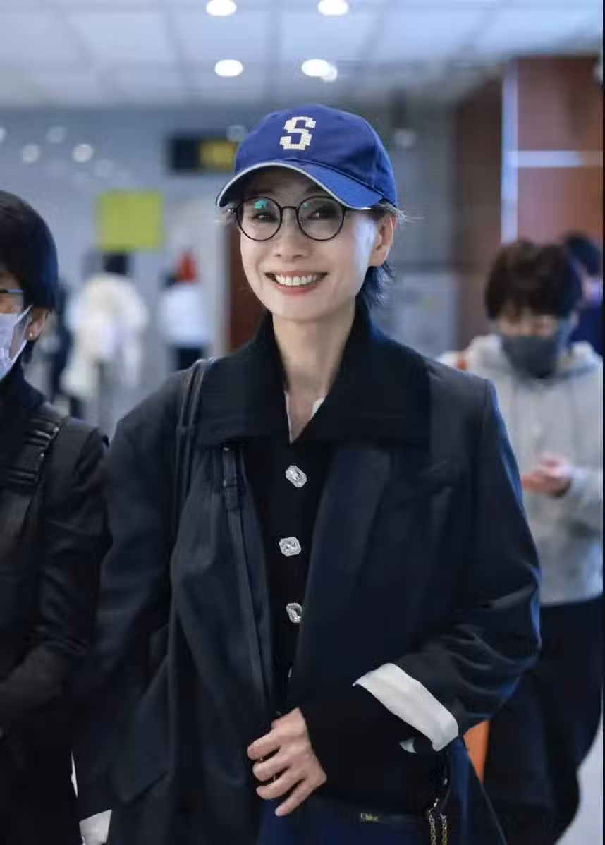 她還戴著一副很斯文的黑框眼鏡,搭配藍色的鴨舌帽和短髮,精幹得就如同一個教授一樣,很多人走在她的旁邊,她的年齡算是最大的,但是姿態竟然是最美的,她帥起來就沒男星啥事了。