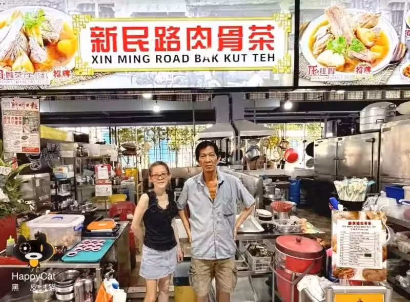 這個位於新民路一座美食中心內的肉骨茶攤,是由洪榮生(65歲)和蔡菊花(66歲)從90年代開始經營。