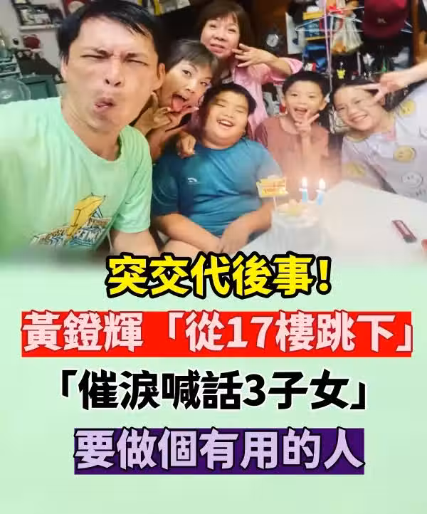 突交代後事! 黃鐙輝「從17樓跳下」 「催淚喊話3子女」:要做個有用的人