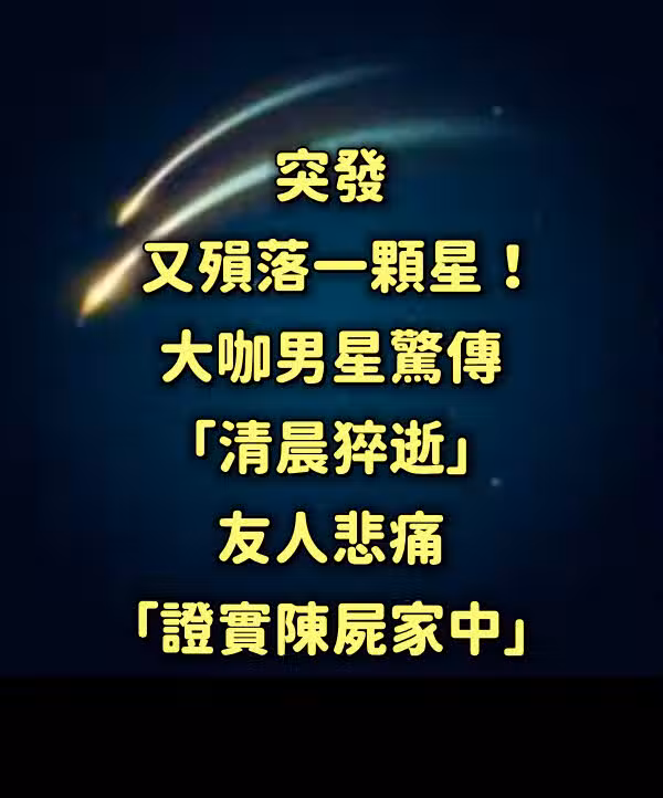 突發/又殞落一顆星!大咖男星驚傳「清晨猝逝」 友人悲痛「證實陳屍家中...」