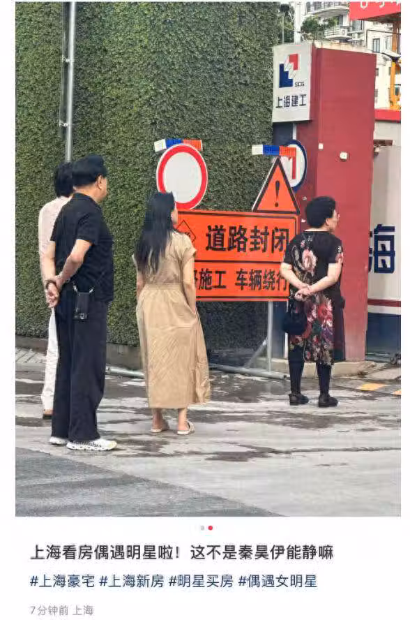 5月24日的時候,就有網友曬出伊能靜與秦昊帶著秦昊的父母,在上海一起看房的照片。