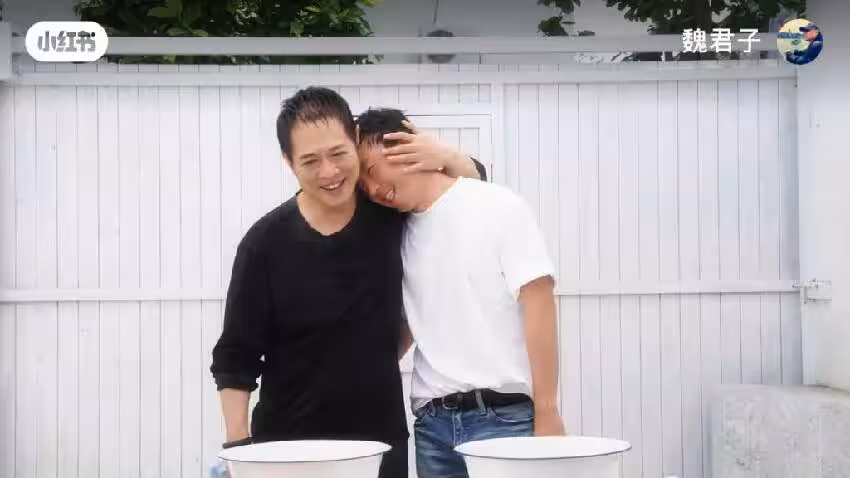 李連杰於個人社交平台放出新短片,片中就見到《給爸爸的信》中,兩父子一起刷牙的片後,隨後父子倆俯身將頭放入注滿水的盆中洗面,萬料不到一起身,竟是「成長」後和「變老」後的謝苗和李連杰。