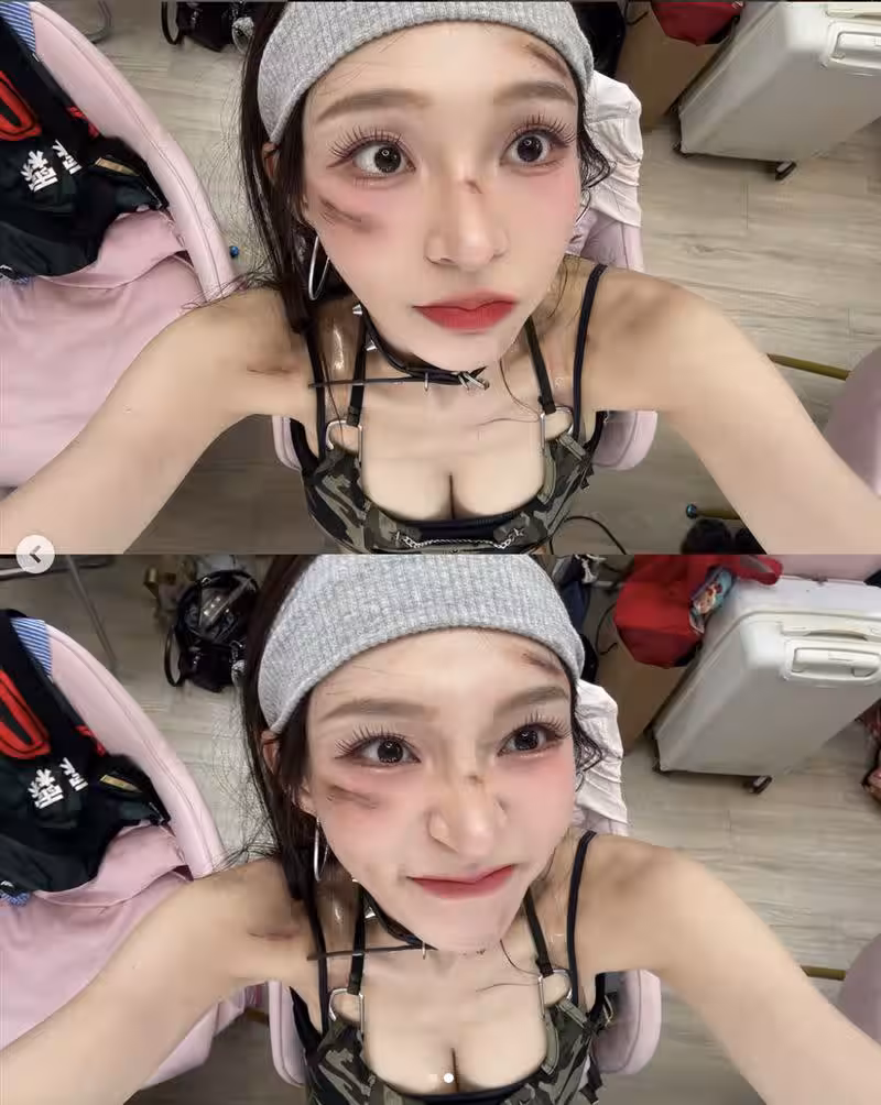 對於傷妝,網友驚呼:「這傷妝也太厲害!」、「逼真到我差點推薦你除疤藥膏。」雖然「受傷」,還是大讚她可愛,尤其林襄由上往下自拍的視角大露深溝,被網友形容:「上帝原來都這樣看啊。」
