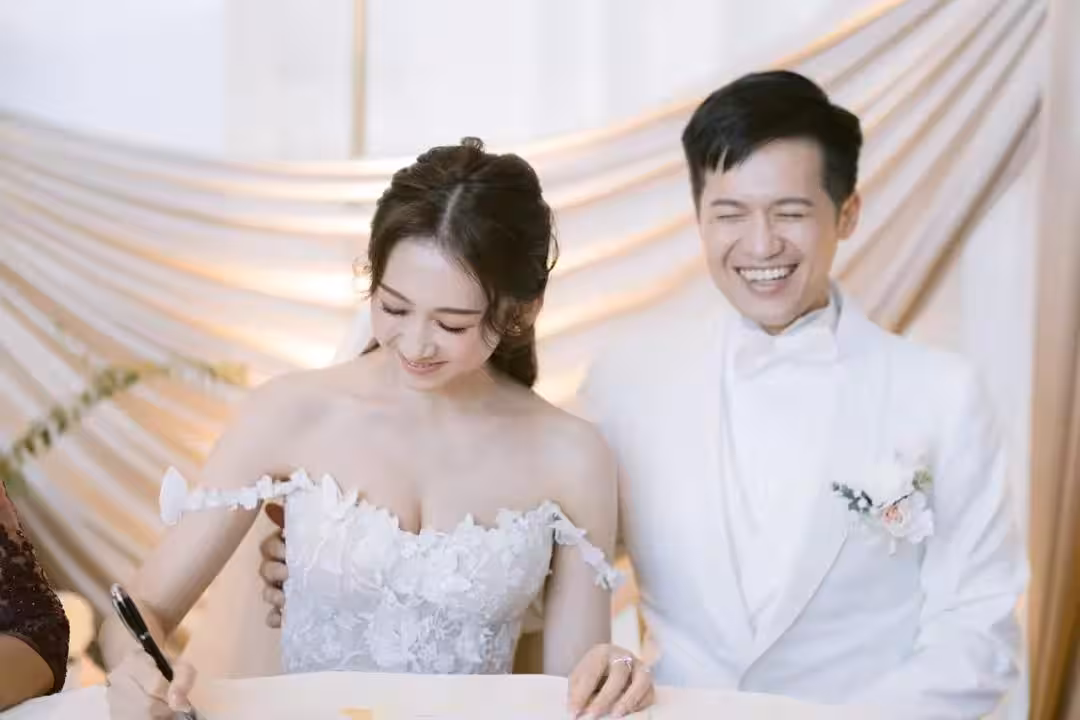繼上月初分享奢華浪漫的婚宴照片後,曾曉婷前天(7月24日)在社交平台上傳6張照片,全都是她與老公的親密合照,相信是婚禮當天的畫面。