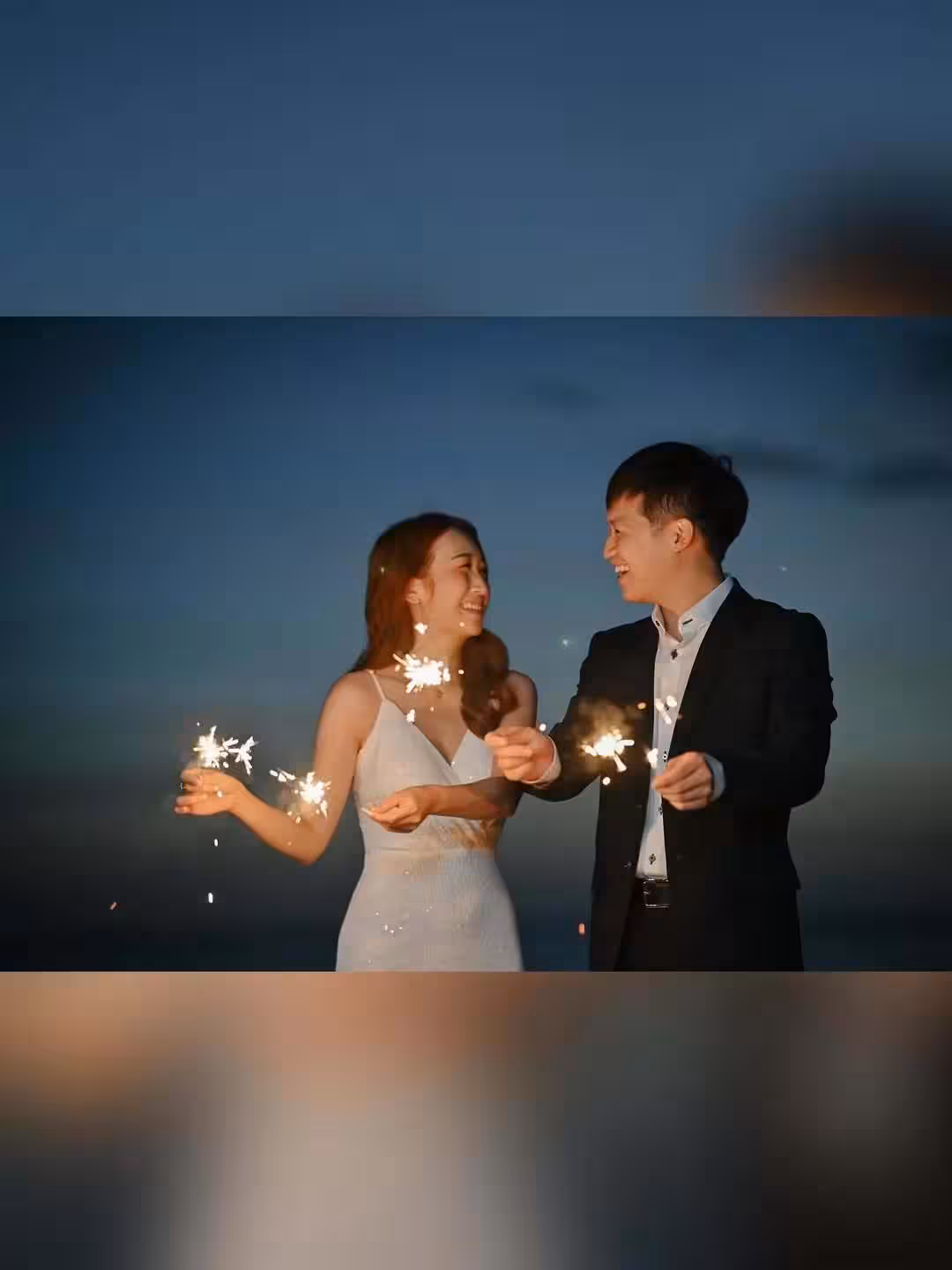 照片可見,曾曉婷先後換上兩套婚紗,閃耀亮相,與老公洋溢幸福笑容,並肩欣賞婚宴煙火表演。-----------------------