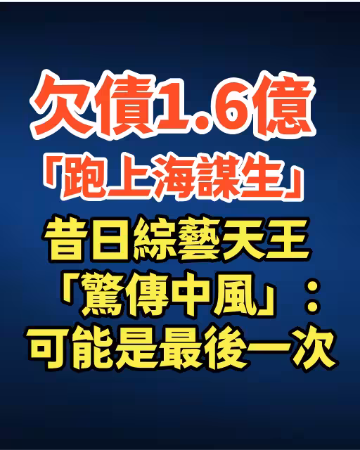 欠債1.6億「跑上海謀生」昔日綜藝天王「驚傳中風」:可能是最後一次!!