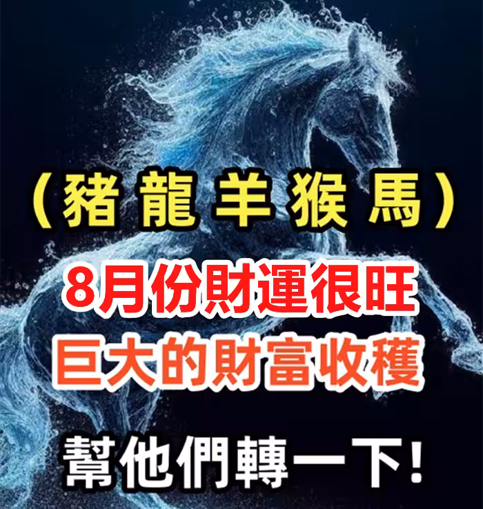 (豬 龍 羊 猴 馬)8月份財運很旺,巨大的財富 收穫