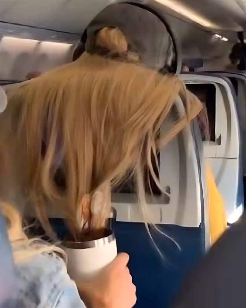 搭飛機時,前座自私女乘客「把頭髮散在椅背」畫面超恐怖,男乘客「脫口一句話」她秒收回頭髮