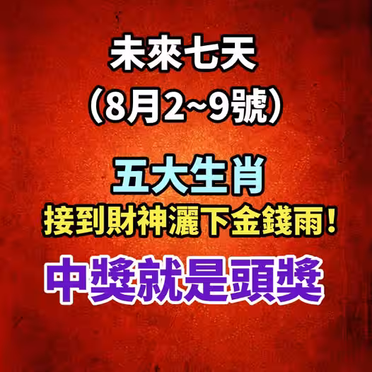 未來七天(8月2~9號)接到財神灑下金錢雨!中獎就是頭獎的生肖!