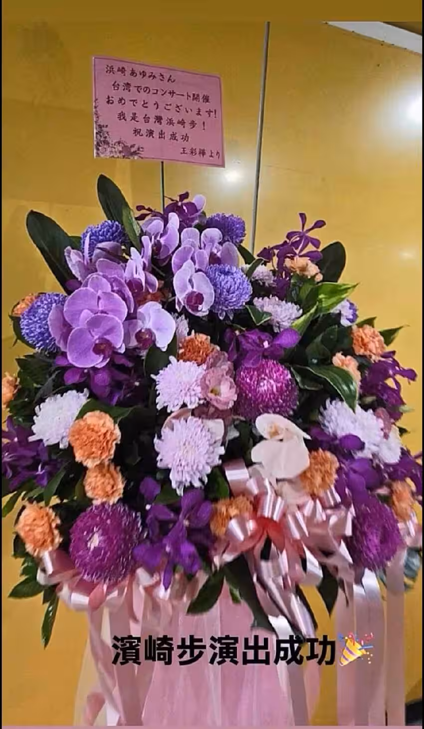 王彩樺受訪時表示「我喜歡她每個造型走在時代尖端,不僅長得漂亮,歌聲又好聽,在台上表演魅力十足」,透露今天一早就起床就開始精心打扮成「步姐Style」,還特別戴上金色假髮,此次是她首次見到濱崎步本尊,最期待聽到名曲〈四季〉,還打趣道歉「我用濱崎步名字那麼久了,真的很不好意思啦,甚至還會有人忘了我叫什麼名字,直接說『濱崎步來了』,臉皮太厚,真的歹勢,所以覺得要送一下花藍代表我的心意」。