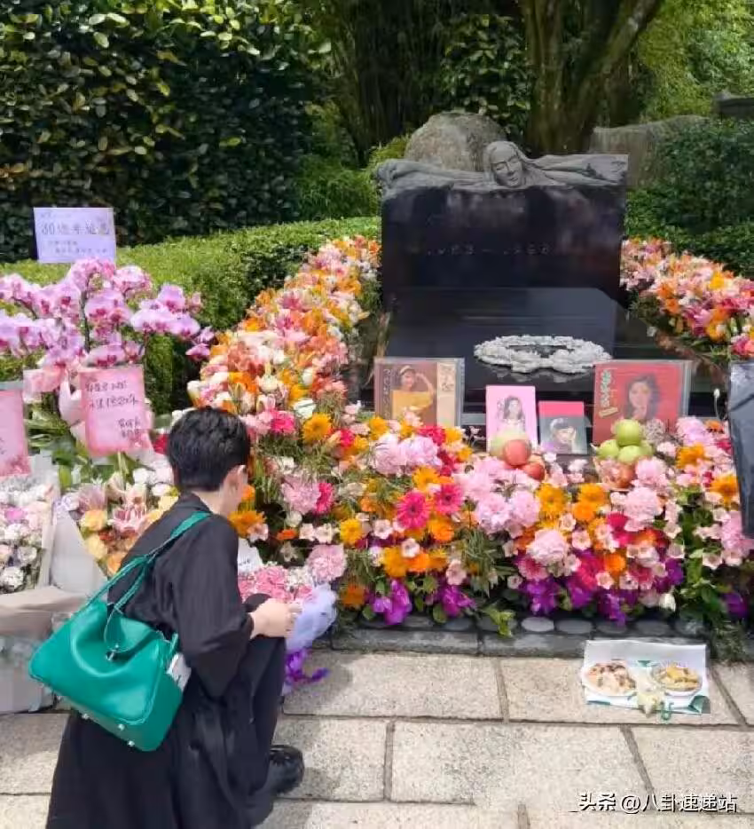 要知道鄧麗君的墓地離她也不遠,但是對方可謂是擺滿了鮮花,說明也經常有粉絲來看望她。