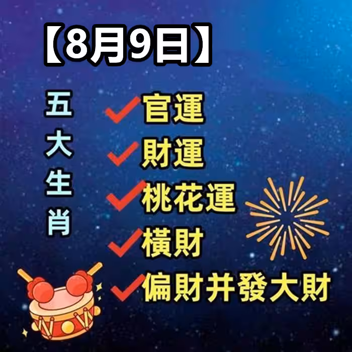 8月9日:官運 財運 桃花運 橫財 偏財並發大財的五大生肖