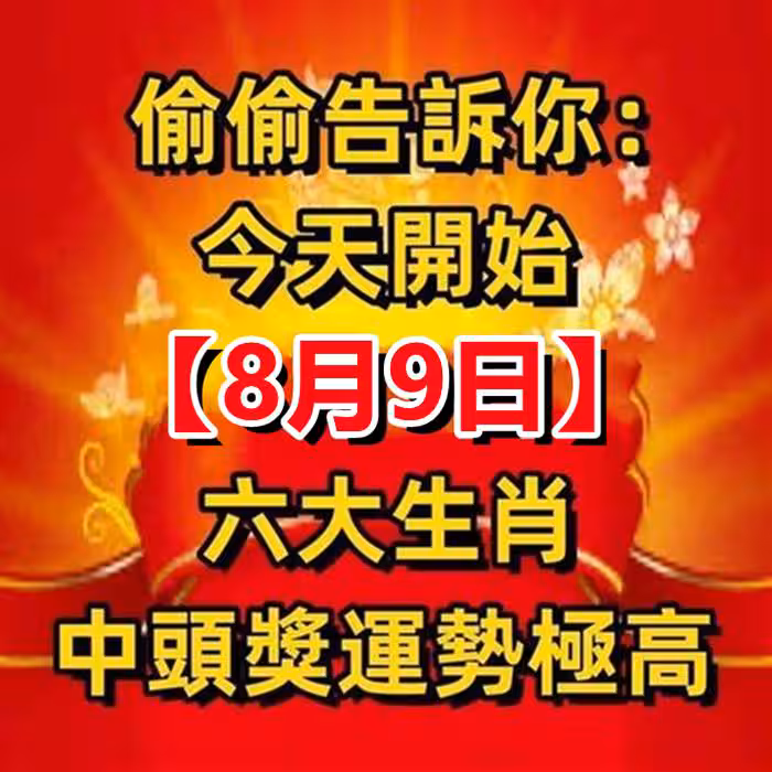 今天開始(8月9日)六大生肖中頭獎運勢極高