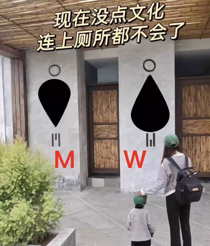 屎尿都在滾了!!沖廁所卻被「門口男女標示」考倒,她尷尬問:我到底該進哪一間?