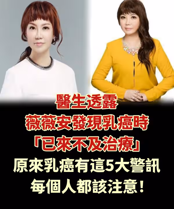 醫生透露薇薇安發現乳癌時「已來不及治療」! 原來乳癌有這「5大警訊」,每個人都該注意 ‼️