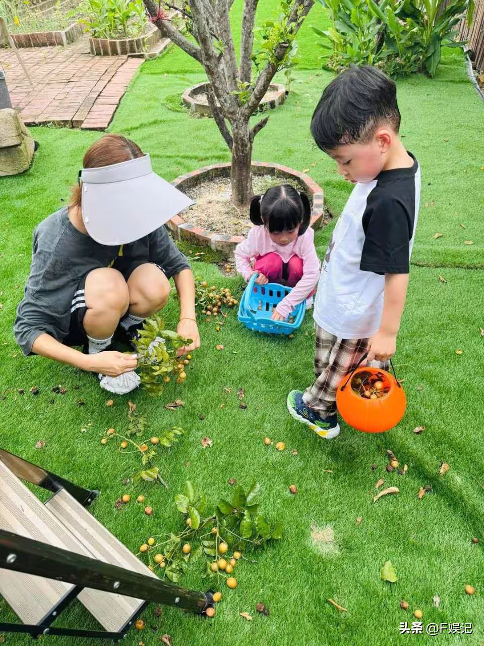 他們一家四口就分工明確,羅仲謙負責踩在梯子上剪黃皮,楊怡蹲下來挑選好果實,一對子女則將黃皮放進小籃子裡面,在地上還看到很多種子,看來他們當時也是忍不住吃了不少。