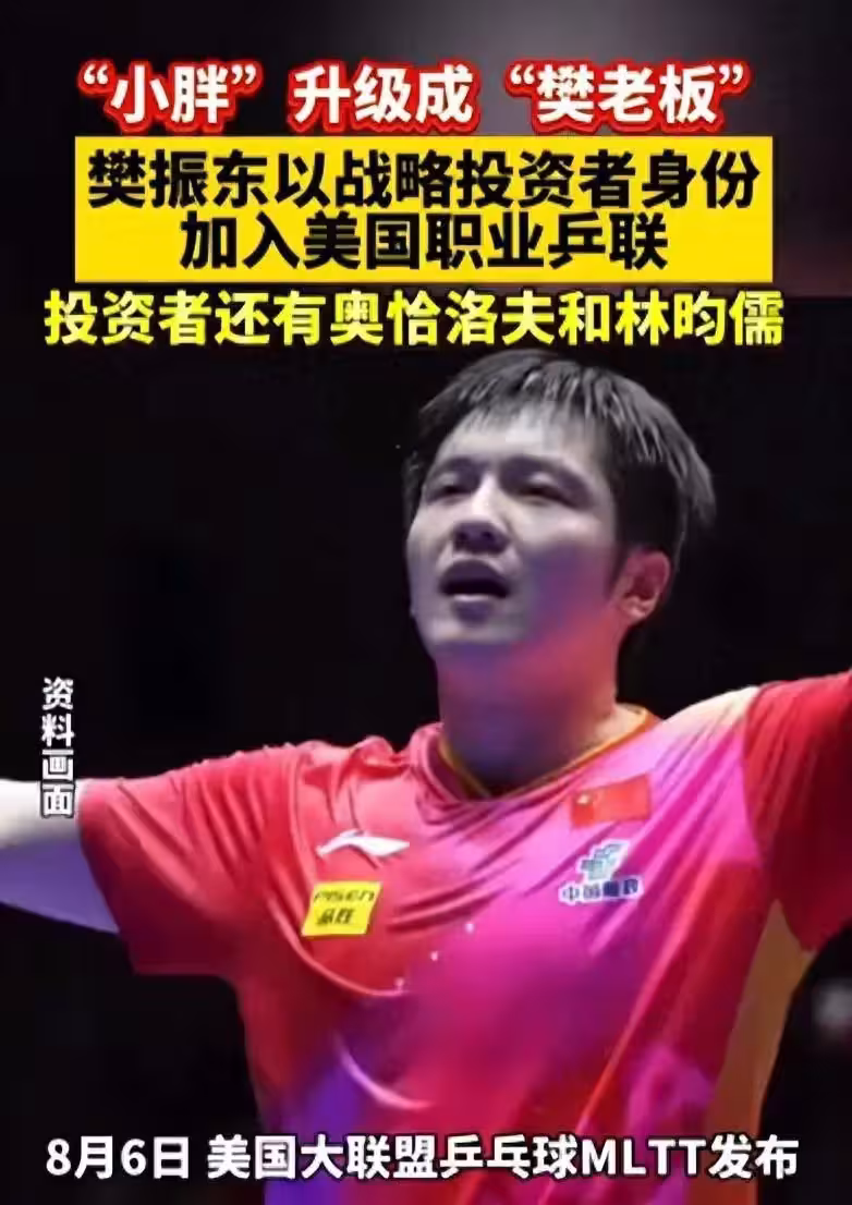 樊振東一下子從運動員變成了投資人兼老闆,原本是打工仔,現在變成了股東,可能會以球員和股東兩重身份參賽,既是運動員又是老闆。才27歲的他,正是當打之年。
