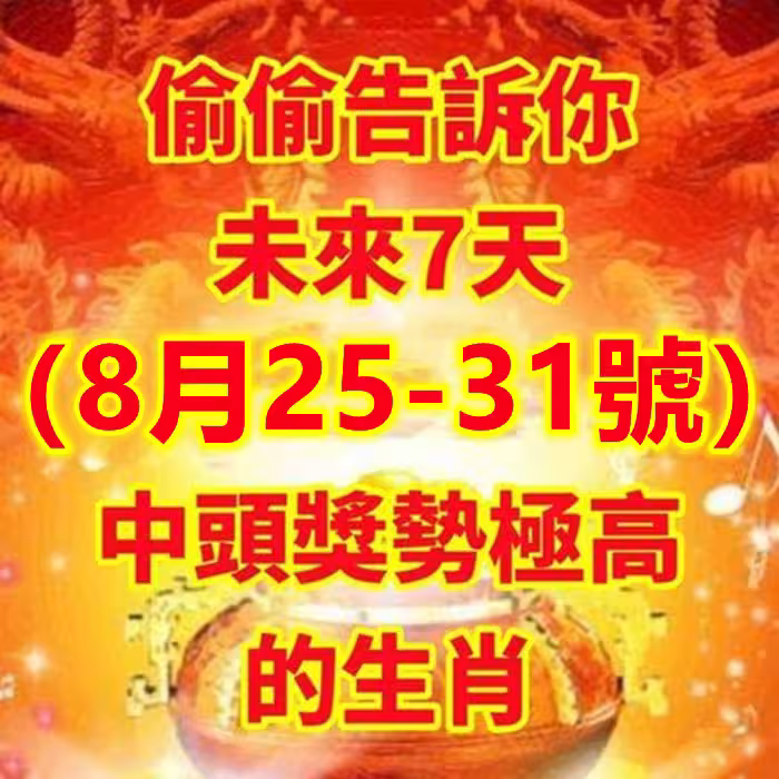 偷偷告訴你:未來7天(8月25~31號)中頭獎勢極高的生肖