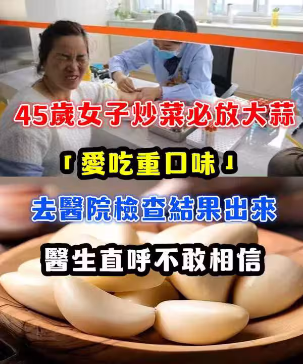 45歲女子「炒菜必放大蒜」愛吃重口味!去醫院「檢查結果出來」醫生直呼不敢相信。