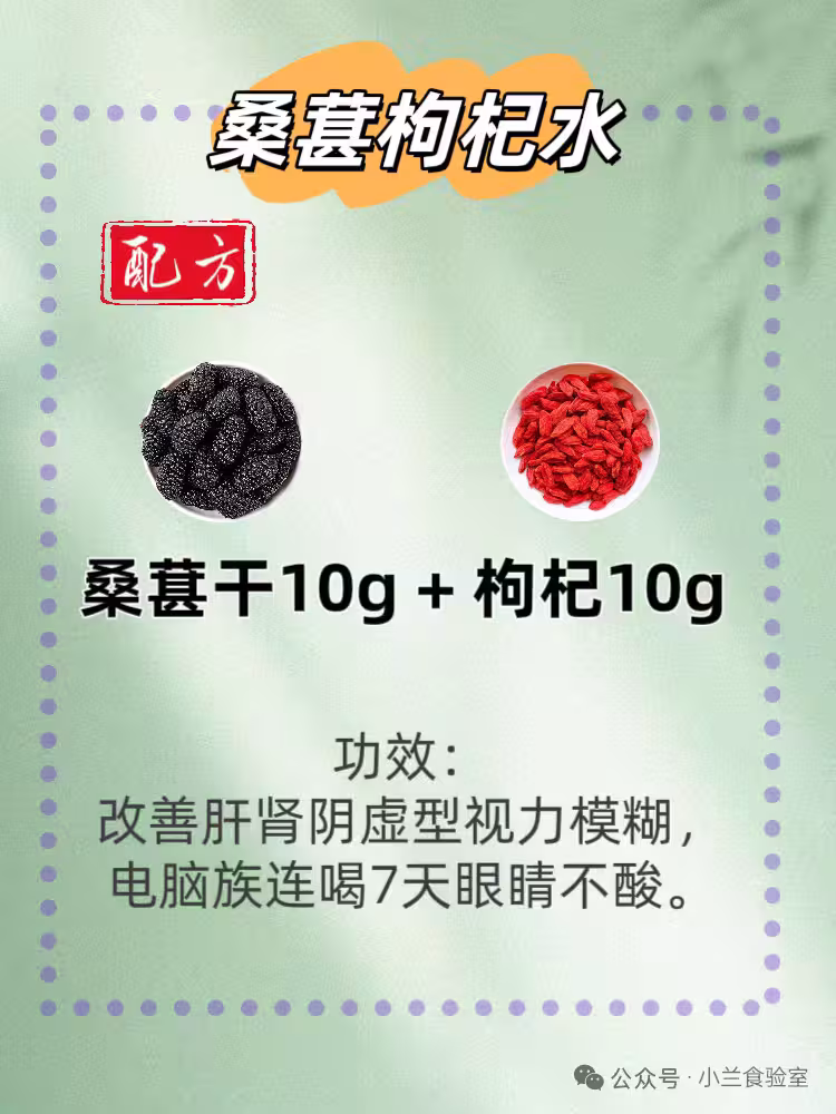 桑葚干10g + 枸杞10g。