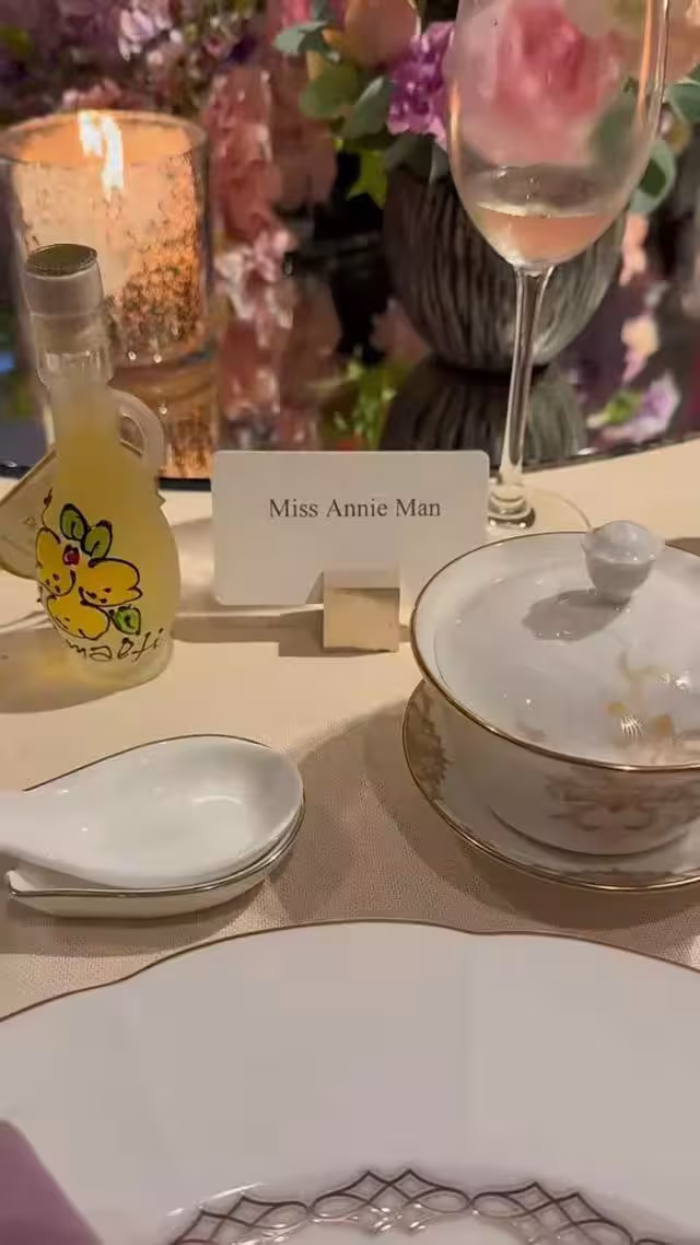 而還有一個小插曲是,排位上湯盈盈寫的是Ms,而文頌嫻寫的是Miss。在英文單詞中,Ms代表已婚婦女,Miss代表未婚小姐。湯盈盈的丈夫是錢嘉樂,文頌嫻的丈夫是李子慎,這是圈中眾所周知的事,按理說主人家應該不會弄錯。