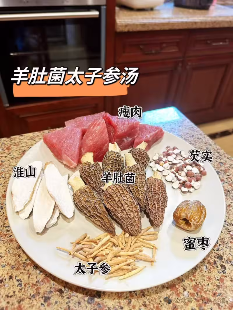 羊肚菌、太子參、芡實、懷山藥、蜜棗、瘦肉