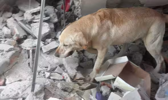 這隻搜救犬在地震災區「歇盡全力搜救」救出7位生還者後,吐舌離開人世.