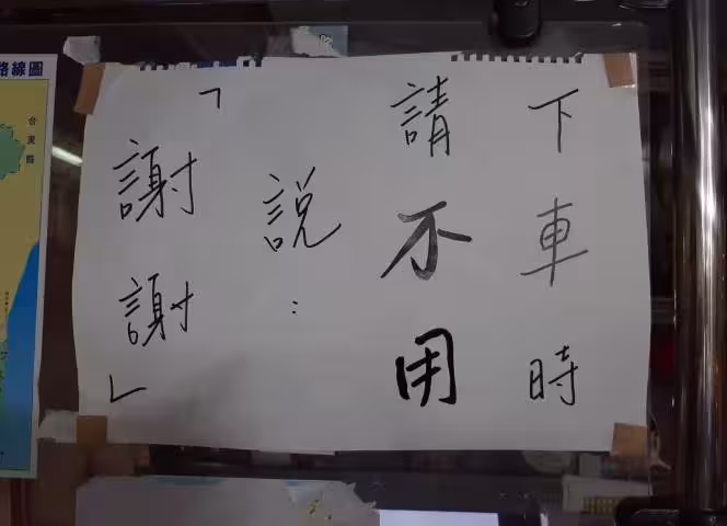 有網友在臉書社團《路上觀察學院》分享一張照片,車上貼了一張手寫公告:「下車時,請不用說『謝謝』」,「不用」兩字還特別加粗。