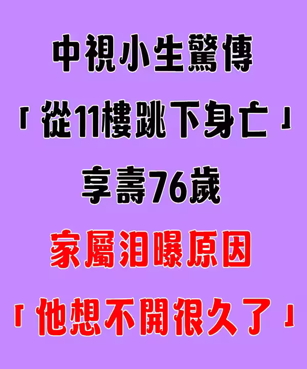 中視小生驚傳「從11樓跳下身亡」享壽76歲~