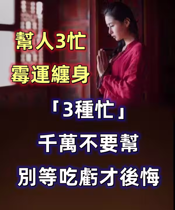 在民間有這麼一句俗語:「幫人3忙,霉運纏身」,正好符合上面這段話的意思。
