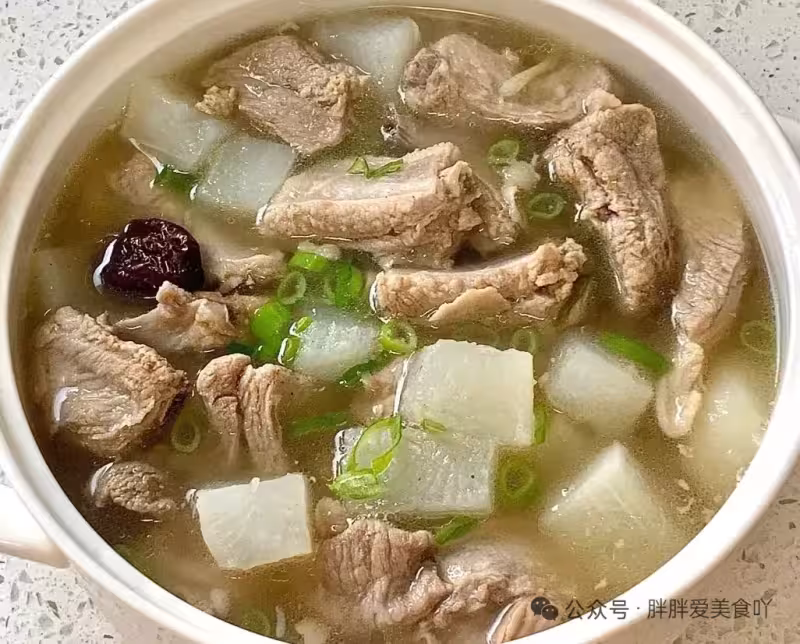 - 加入白蘿蔔塊,繼續小火燉20-30分鐘,直到蘿蔔變透明、軟而不爛。