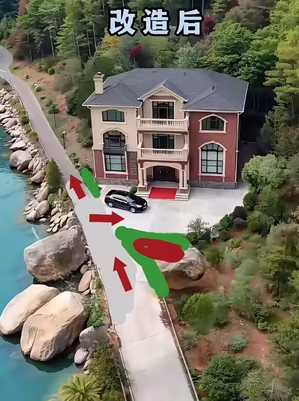 他曬別墅門前岔路「改造前後對比照」!怒找工人退錢,內行網友看「1細節」太巧妙:請到高人了