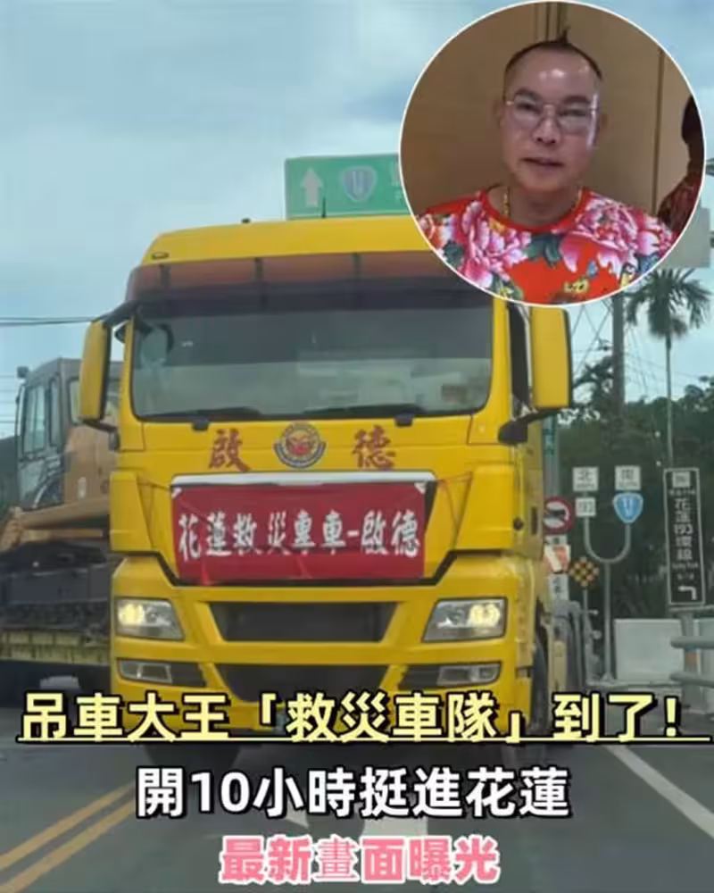 吊車大王「救災車隊」到了!開10小時挺進花蓮,最新畫面曝光