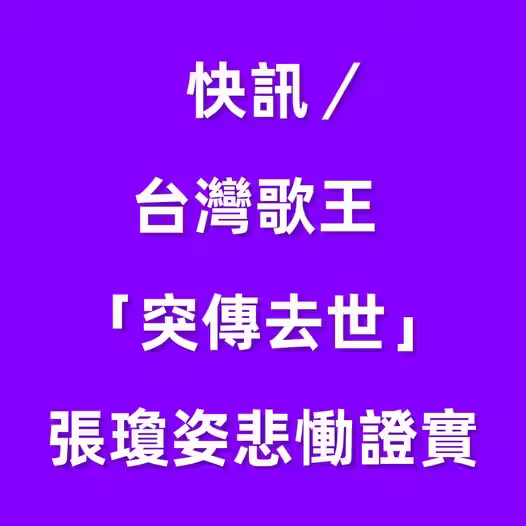 快訊/台灣歌王 「突傳去世」!張瓊姿悲慟證實