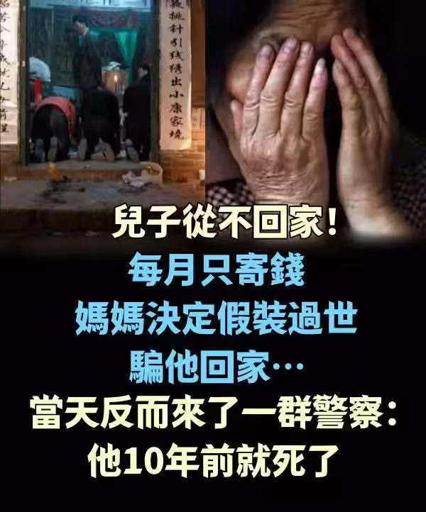 兒子從不回家!每月只寄錢, 媽媽決定「假裝過世」騙他回家…當天反而「來了一群警察」:他10年前就死了