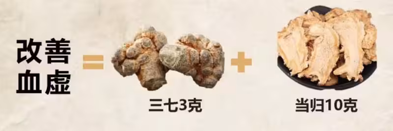 功效:當歸中含有揮髮油及阿魏酸,能擴張血管、增強血流量;三七的活血作用則有效減少血液瘀滯,改善貧血狀態。兩者結合對月經不調、血虛面色蒼白的女性有很好的調理作用。