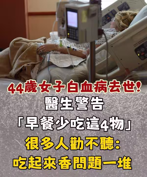 44歲女子白血病去世了!!醫生警告「早餐少吃這4物」很多人勸不聽:吃起來香問題一堆!