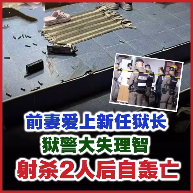 (呵叻市綜合電)泰國呵叻府的一名獄警發現前妻和自己離婚僅兩個星期,便和剛調任的新獄長墜入愛河,疾嫉恨交加下拔槍將前妻和新獄長擊殺,隨後飲彈自盡。