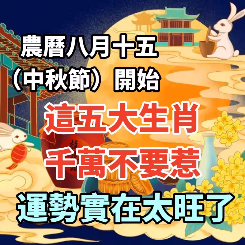 這五大生肖千萬不要惹,農曆八月十五(中秋節)開始運勢實在太旺了!