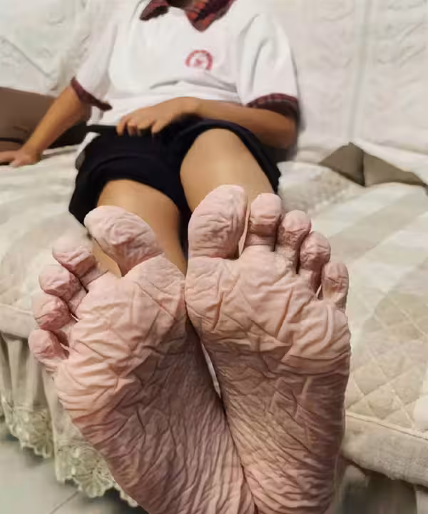 當襪子被褪下的那一刻,我倒吸一口冷氣,心臟像被狠狠揪住——兒子的腳底板,布滿了慘白、浮腫的褶皺,皮膚因為長時間浸泡而變得異常柔軟、脆弱,真的就像一張被水泡爛、一碰就破的白紙! 「你的腳怎麼回事?!怎麼會弄成這樣!」我的聲音因為驚恐和心疼而拔高,腦子裡閃過各種不好的猜測。