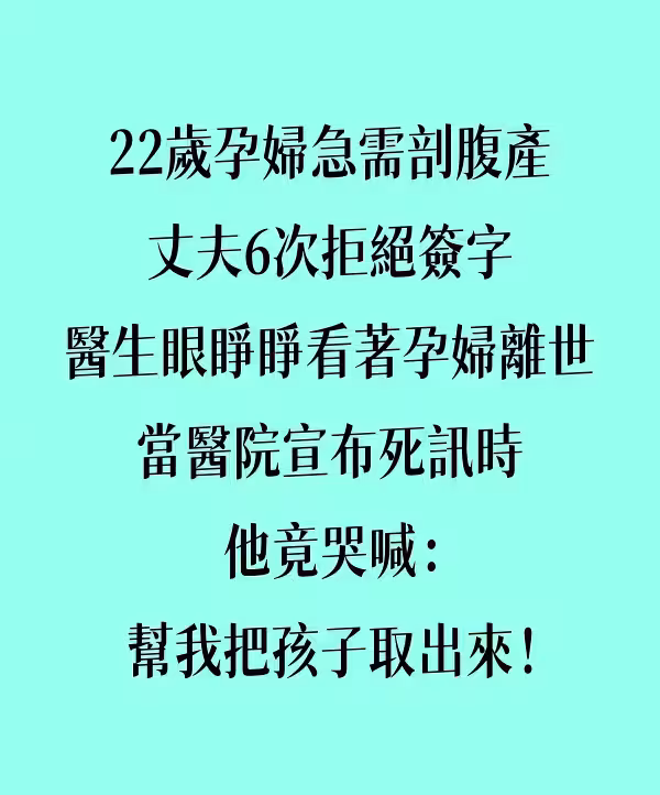 22歲孕婦急需剖腹產,丈夫6次拒絕簽字 醫生眼睜睜看著孕婦離世,當醫院宣布死訊時,他竟哭喊:幫我把孩子取出來