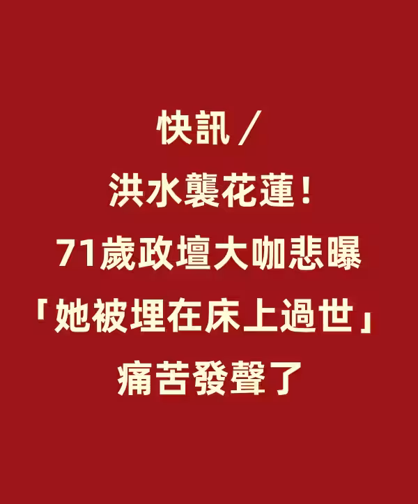 快訊/洪水襲花蓮!71歲政壇大咖悲曝「她被埋在床上過世」痛苦發聲了!