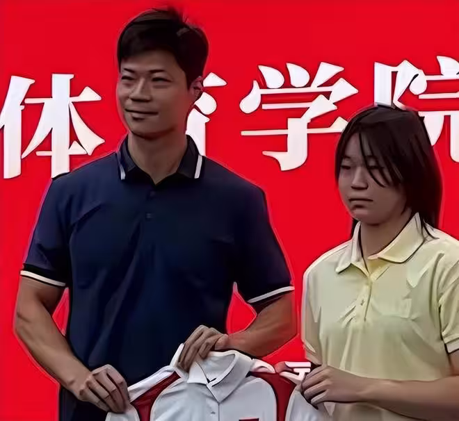 迎新活動上,全紅嬋還送了學院一件親筆簽名的巴黎奧運會出場服,蘇炳添親自接了,倆人還合了影。