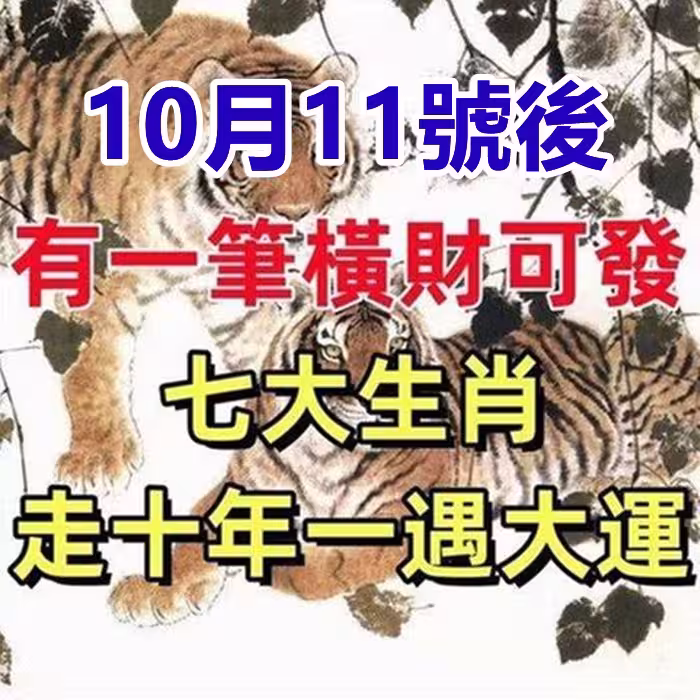 10月11號後有一筆橫財可發,七大生肖走十年一遇大運